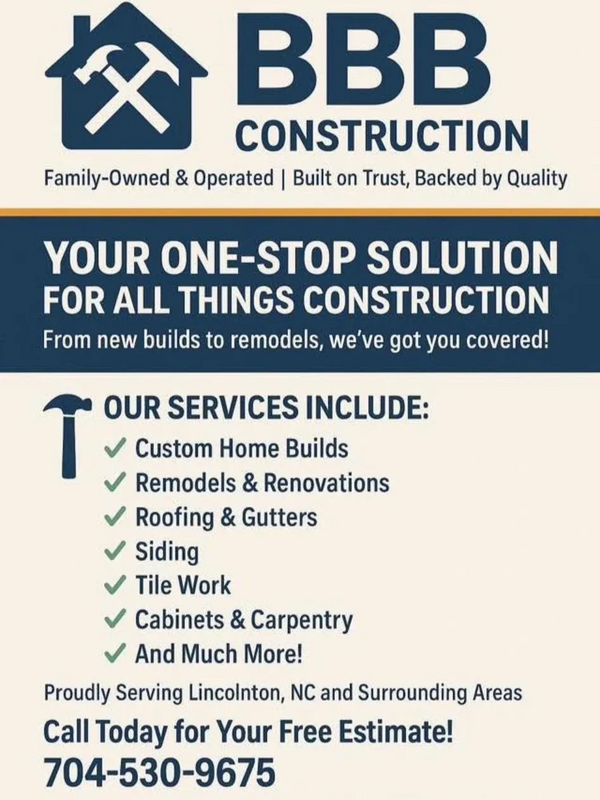 At BBB Construction, we pride ourselves on being a family-owned and operated business. We believe in integrity, quality, and customer satisfaction as the foundation of our work.